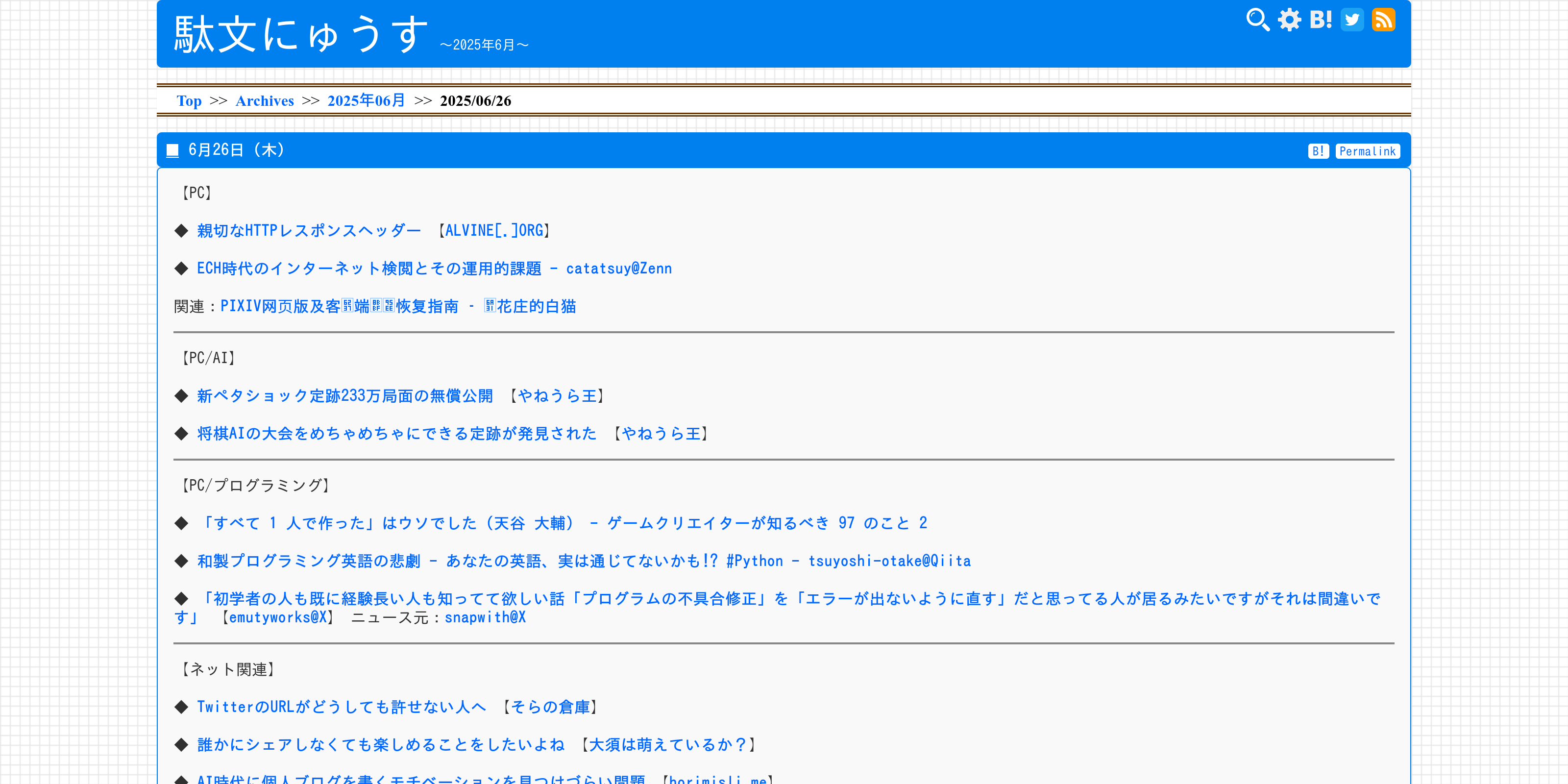 この記事を2025年6月26日の駄文にゅうす様で取り上げていただきました。びっくりしました。本当にありがとうございます。しばらく経ってから気づいたので,お礼のコメントを乗せるタイミングを見失ってしまい本当に今更ながら追記しました。